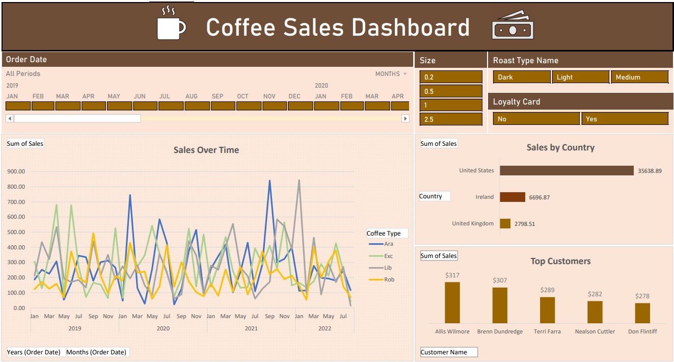 sales by country. The dashboard featured timeline and slicers for efficient data filtering.